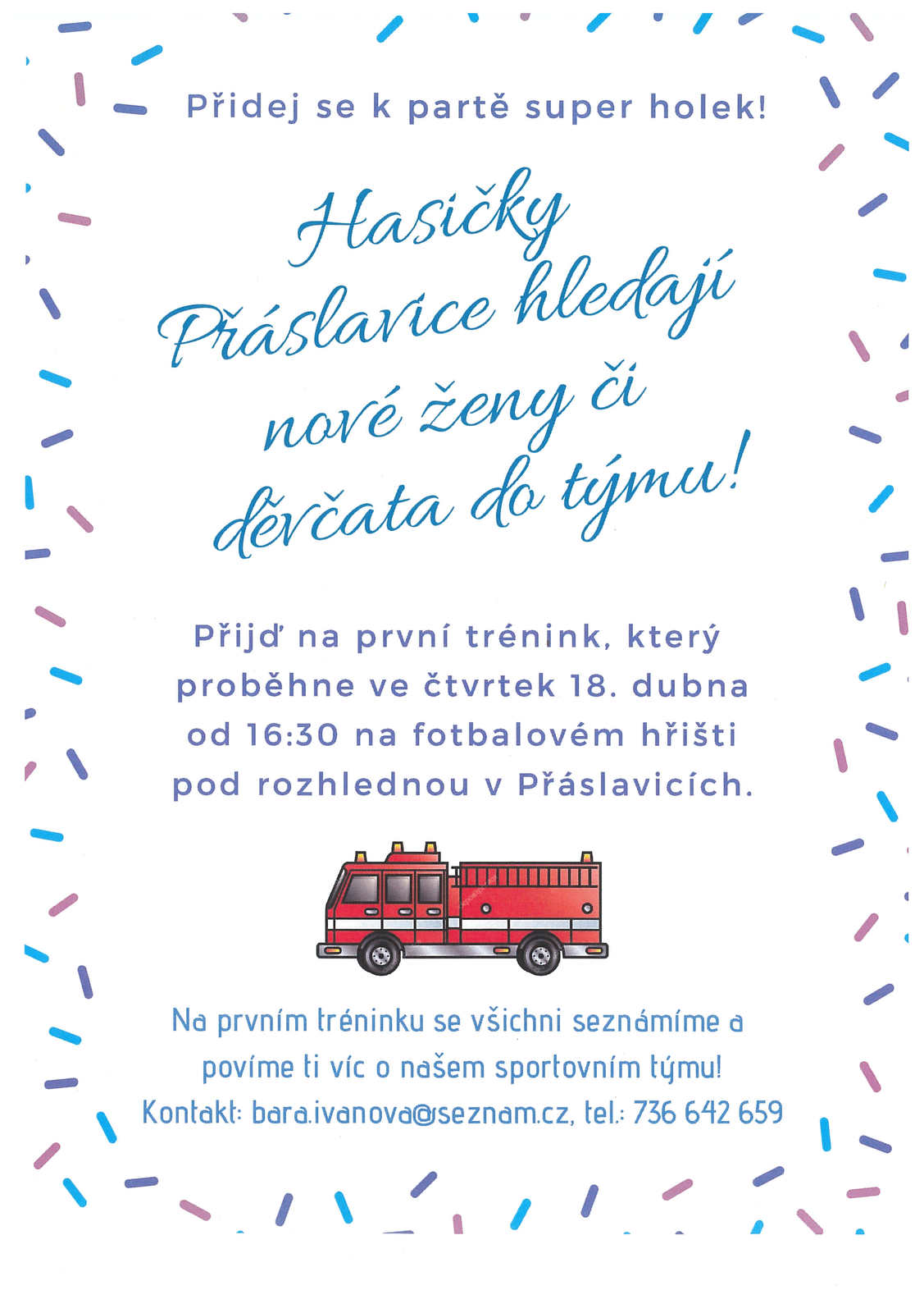 Úvod > Život v obci > Aktuality > Hasičky Přáslavice hledají posily do týmu