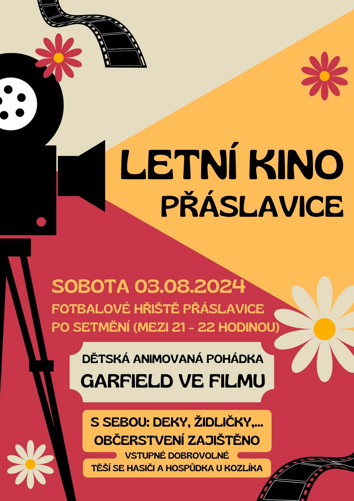 Úvod > Život v obci > Aktuality > Letní kino Přáslavice - Garfield ve filmu - sobota 3.8.2024