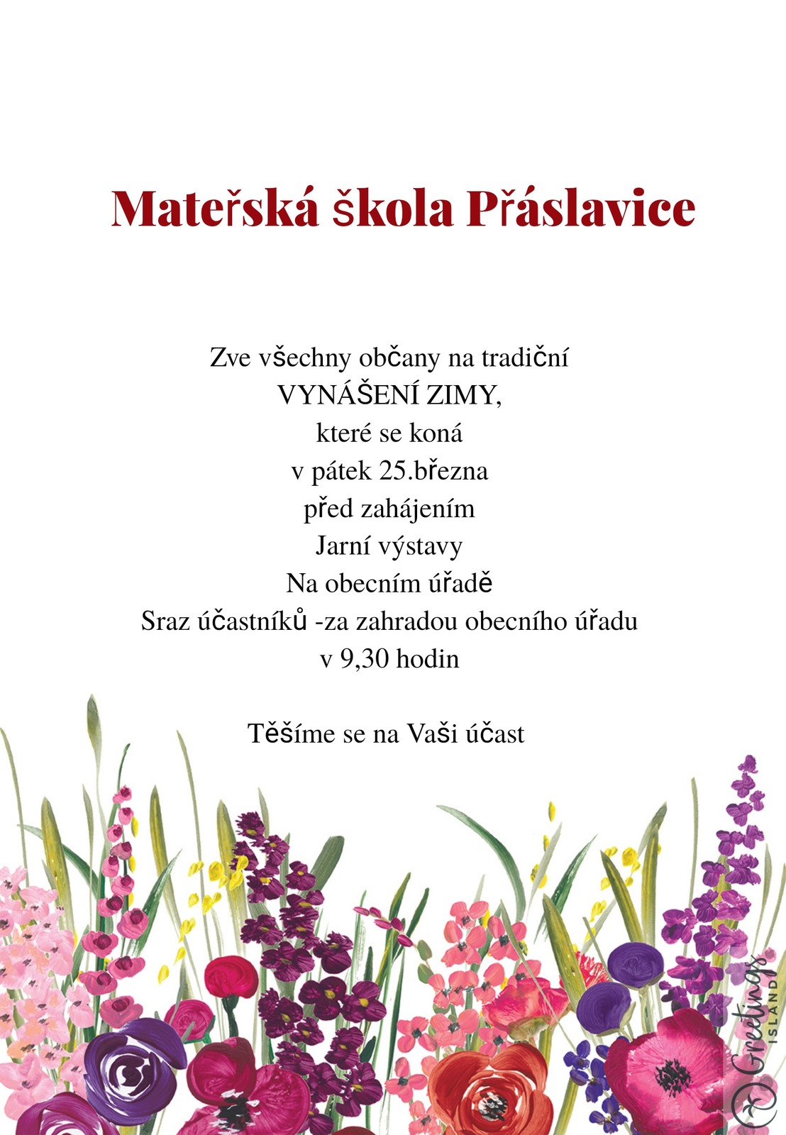MŠ Přáslavice - pozvánka na Vynášení zimy