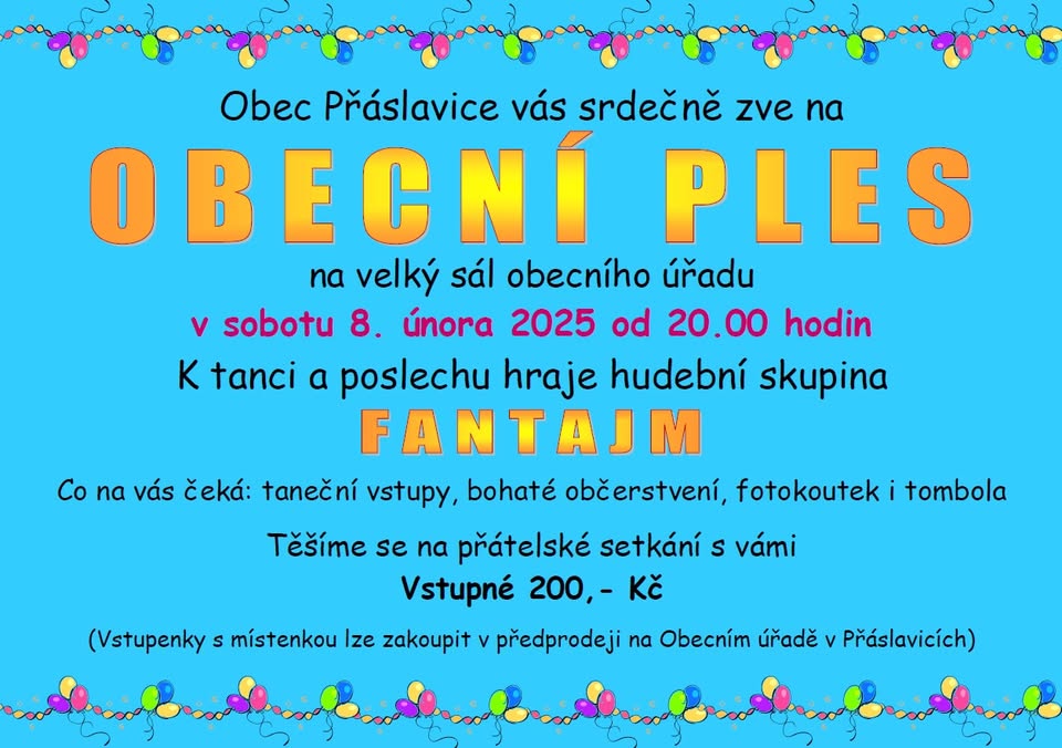 Úvod > Život v obci > Aktuality > Obecní ples - Přáslavice 8.2.2025