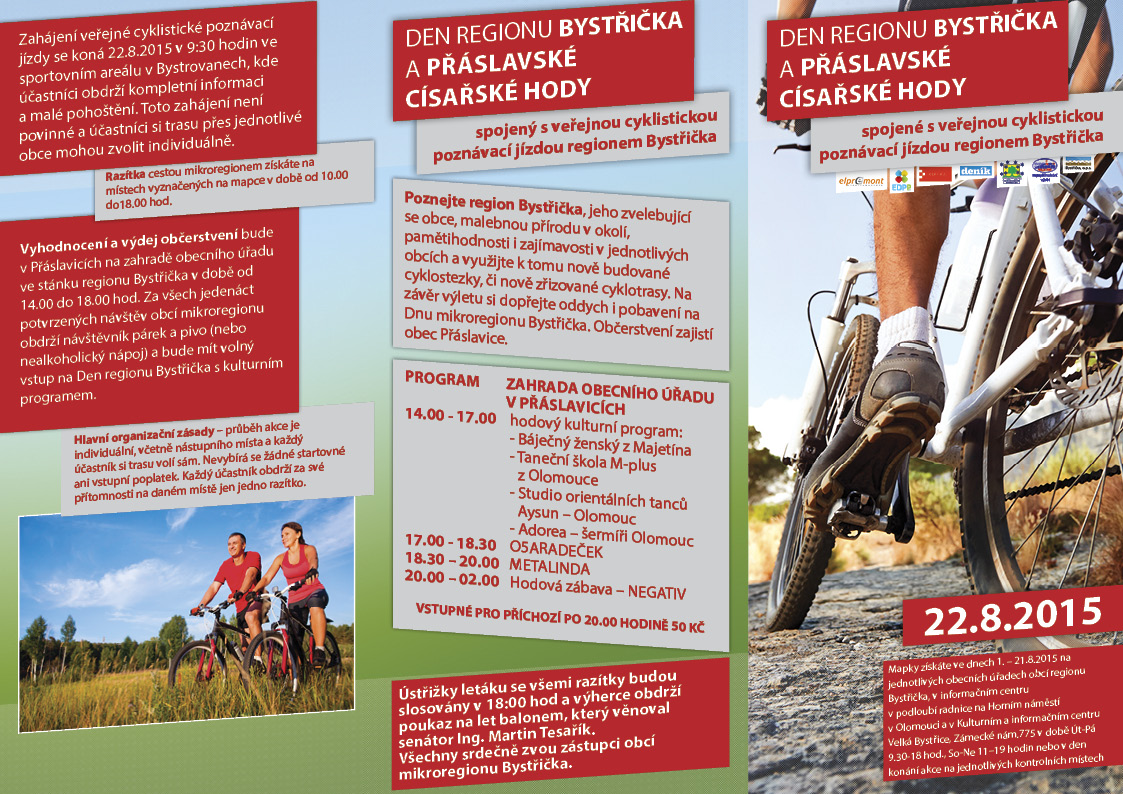 Úvod > Život v obci > Aktuality > Pozvánka na den regionu Bystřička a Přáslavské císařské hody - 22.8.2015