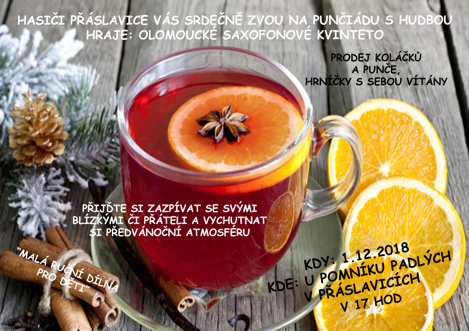 Pozvánka na Punčiádu s hudbou - Přáslavice 1.12.2018