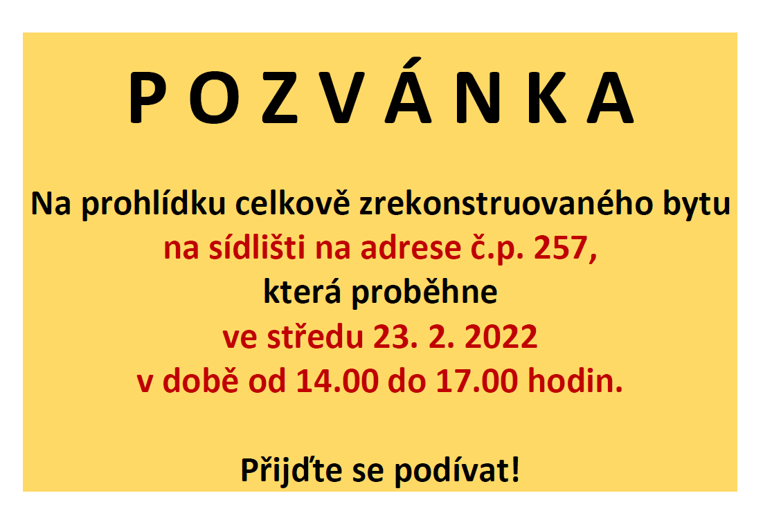 Pozvánka - prohlídka zrekonstruovaného bytu na obecním sídlišti - 23.2.2022