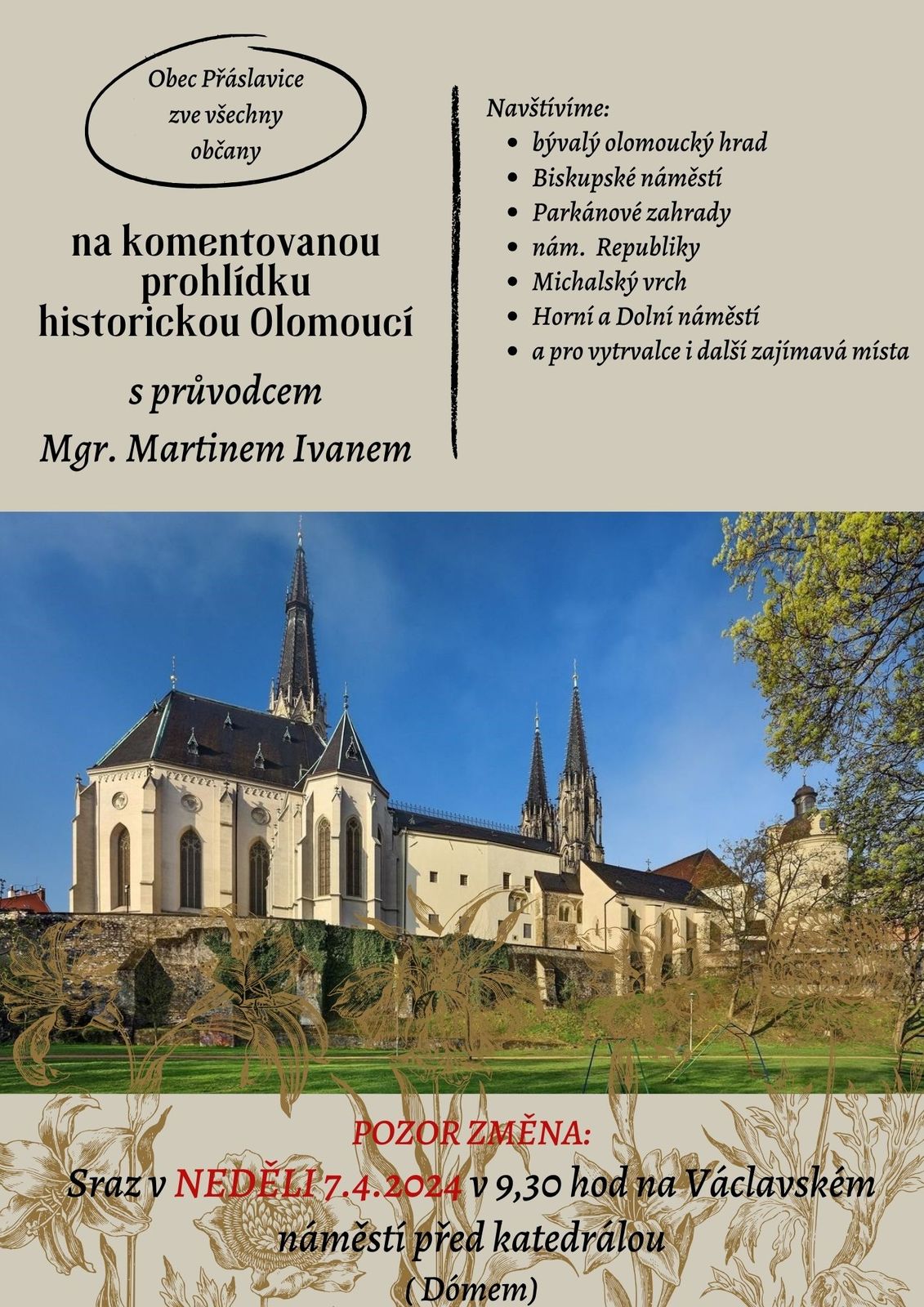 Úvod > Život v obci > Aktuality > Prohlídka historickou Olomoucí - neděle 7.4.2024