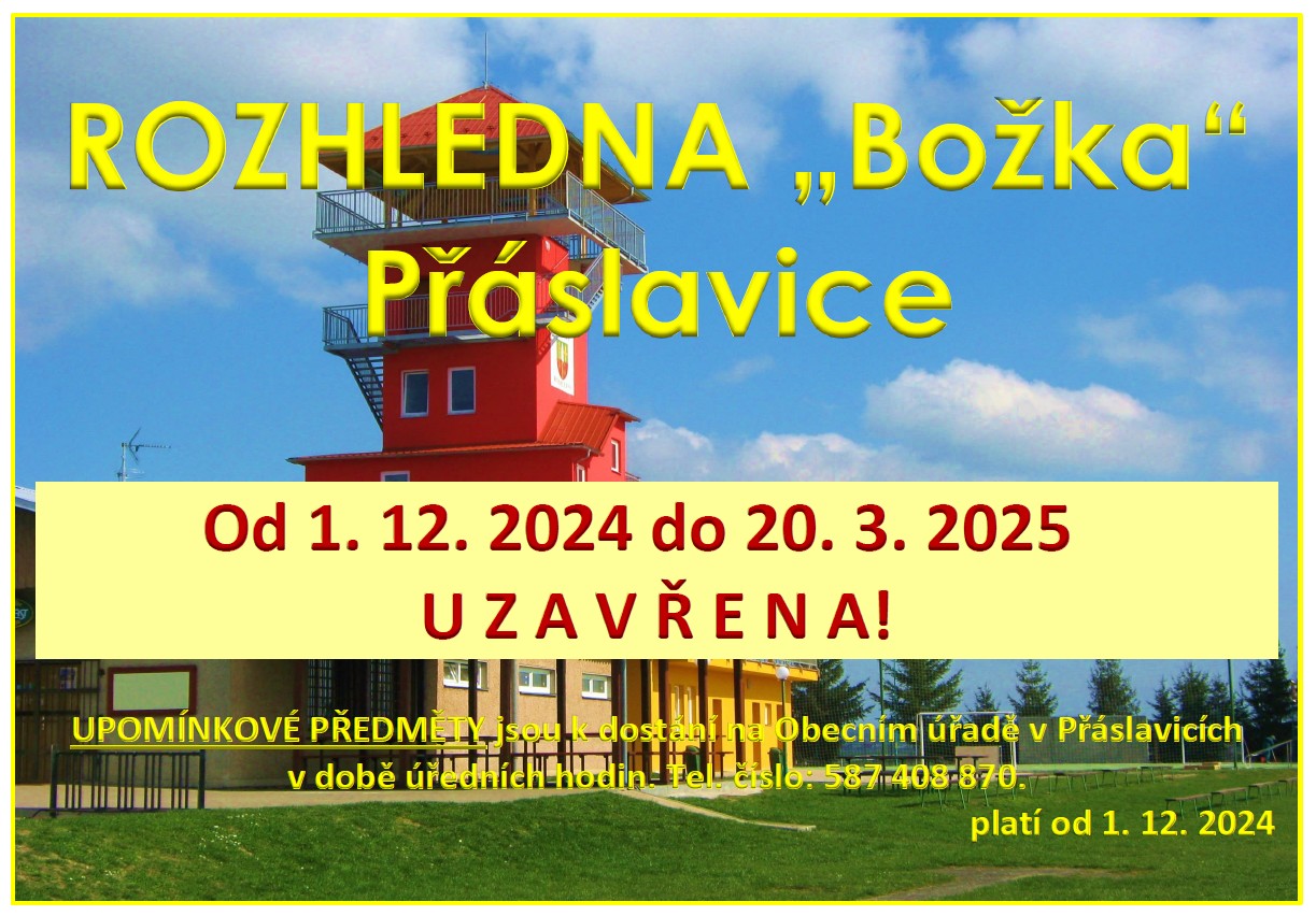 Úvod > Život v obci > Aktuality > Rozhledna Božka Přáslavice - uzavřena do 20.3.2025