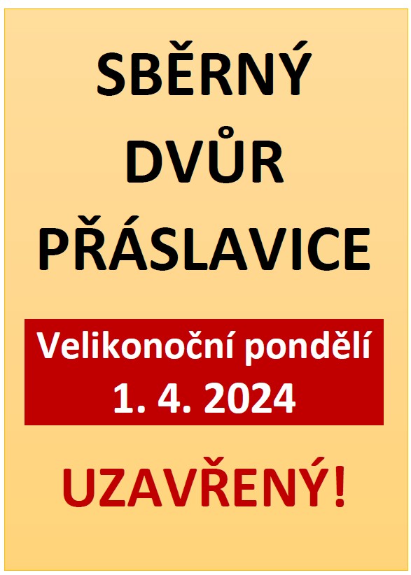 Úvod > Život v obci > Aktuality > Sběrný dvůr Přáslavice - Velikonoční pondělí 1.4.2024 zavřeno