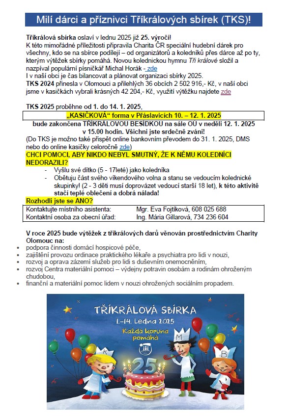 Úvod > Život v obci > Aktuality > Tříkrálová sbírka 2025 Přáslavice