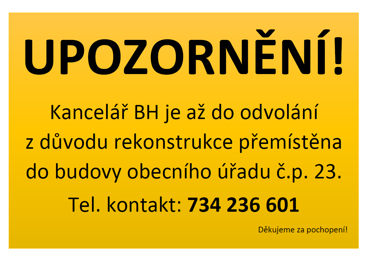 Úvod > Život v obci > Aktuality > Upozornění - kancelář bytového správce