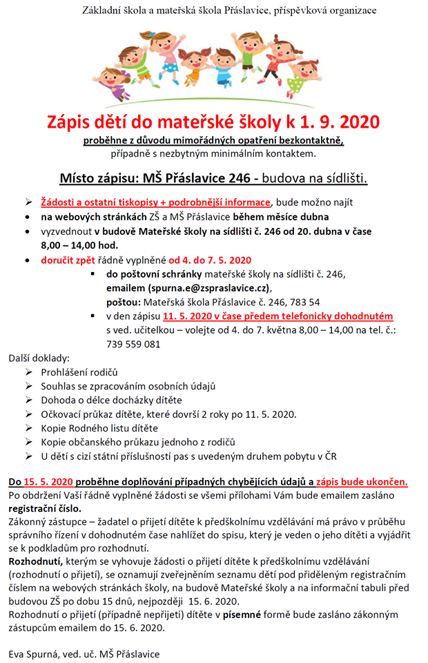 Úvod > Život v obci > Aktuality > Zápis dětí do mateřské školy k 1.9.2020