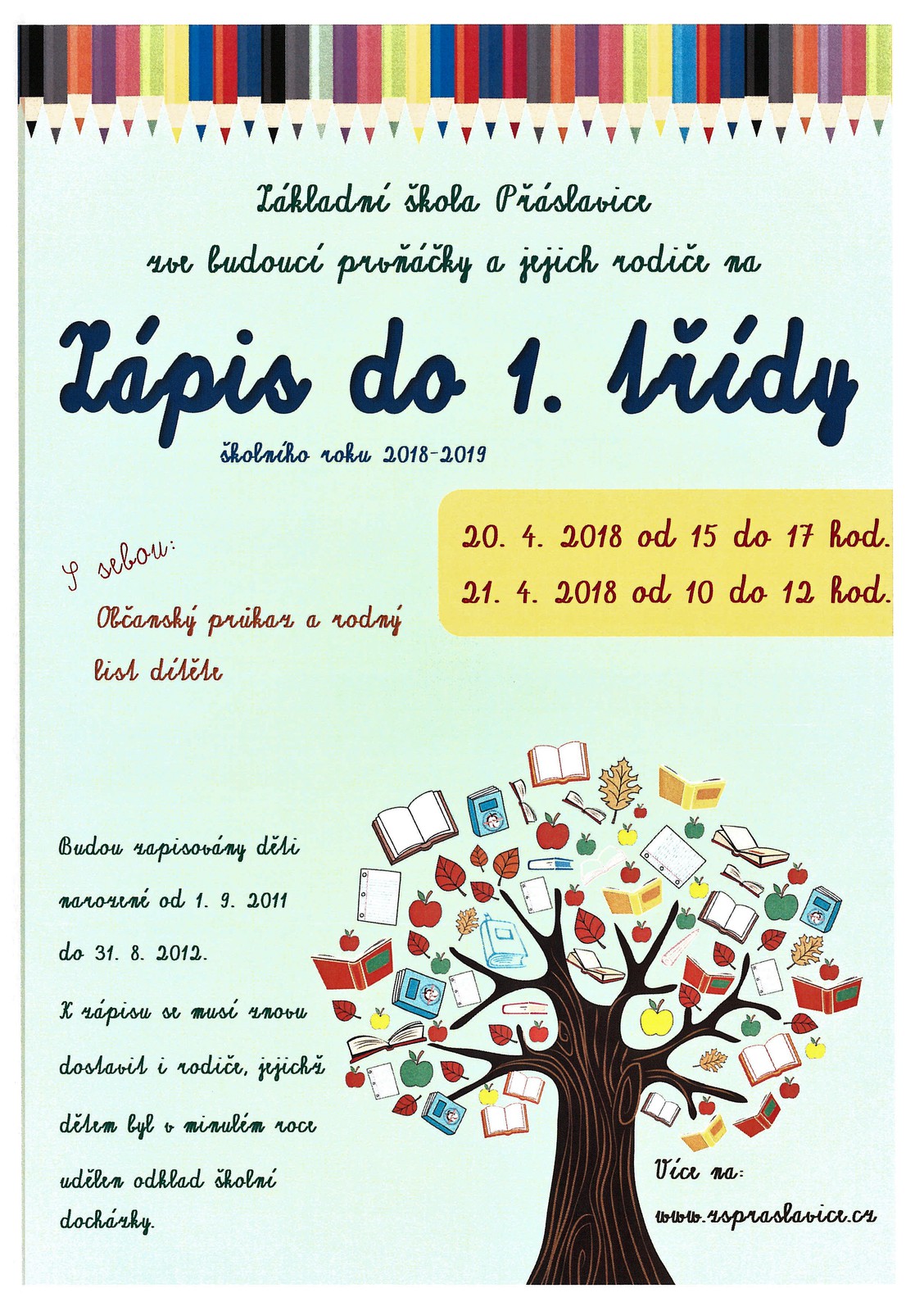 Úvod > Život v obci > Aktuality > Zápis do 1. třídy - Základní škola Přáslavice