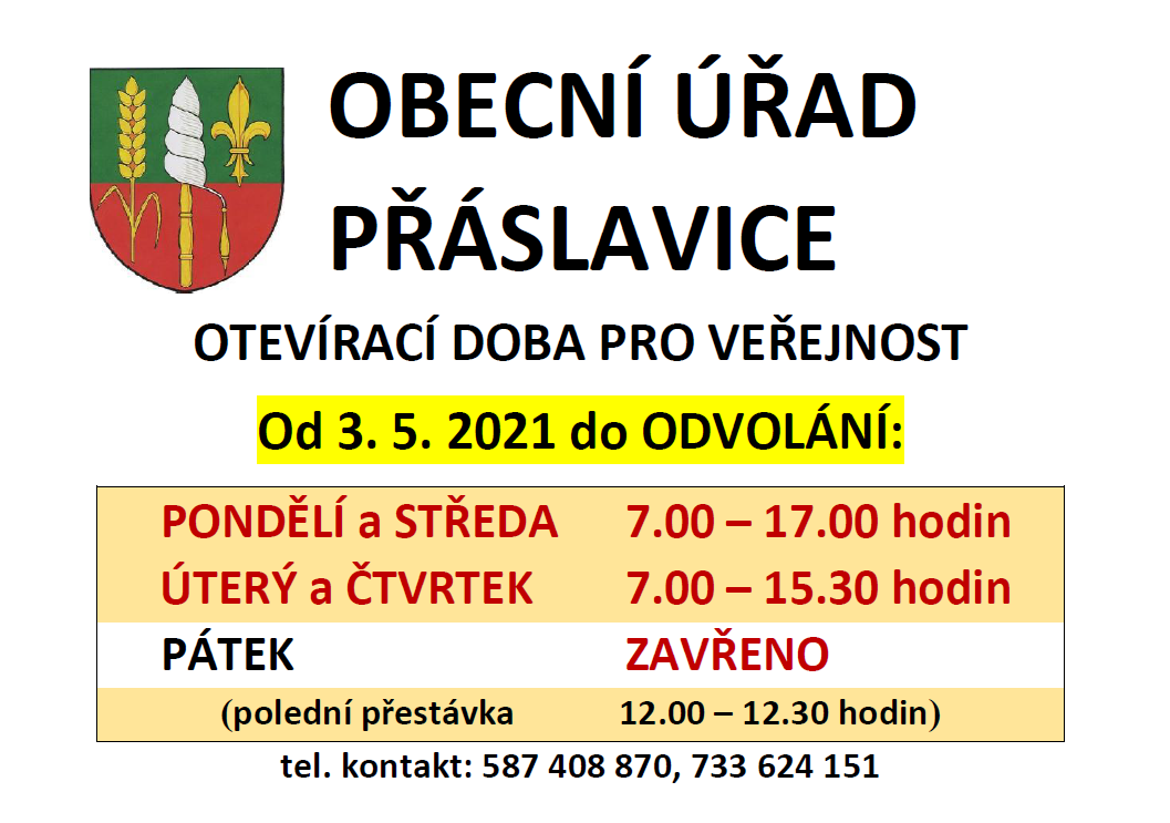 - OBECNÍ ÚŘAD Přáslavice od 2. 3. 2021 do ODVOLÁNÍ: