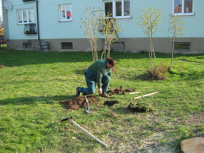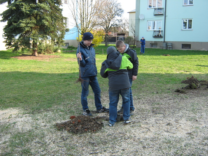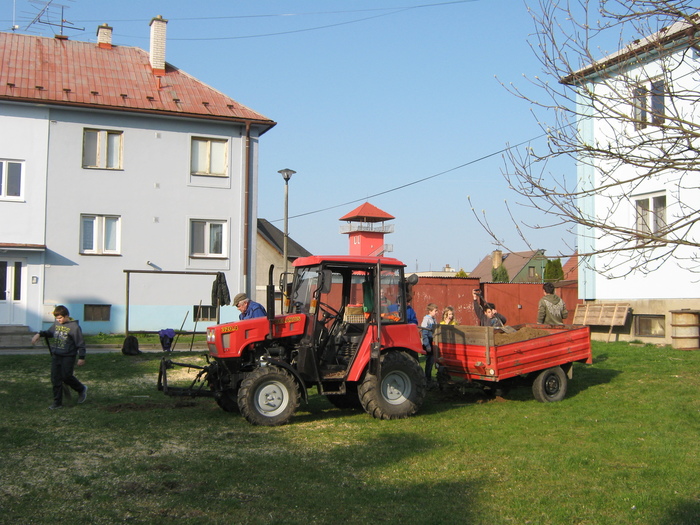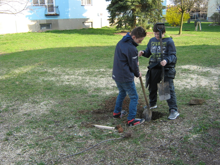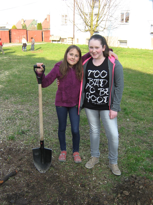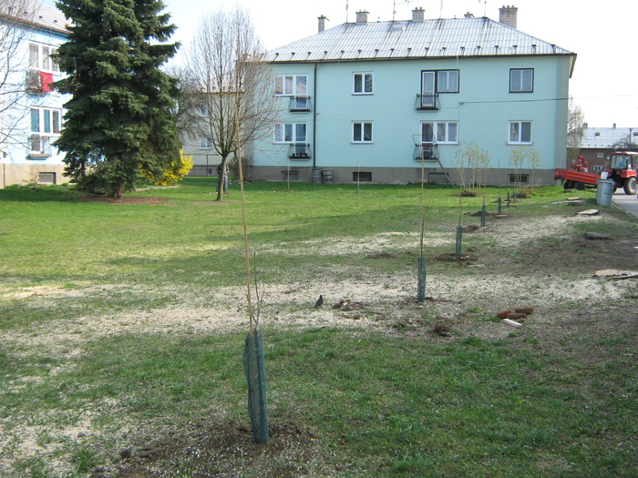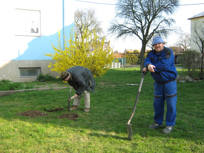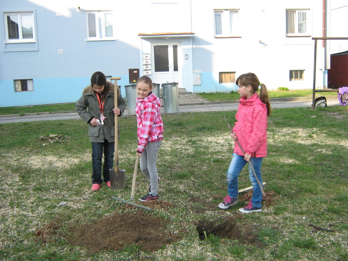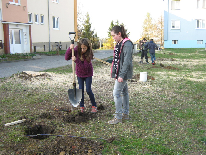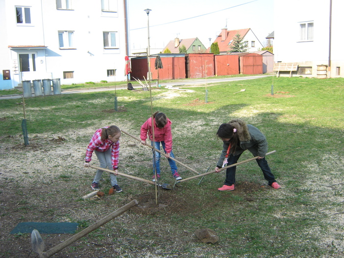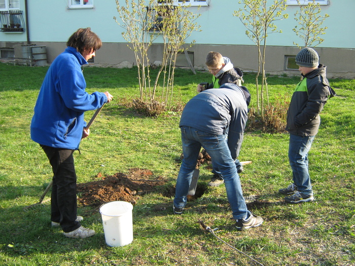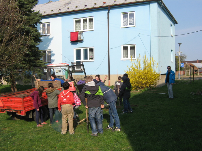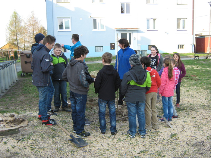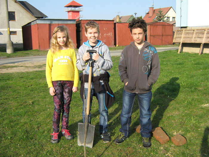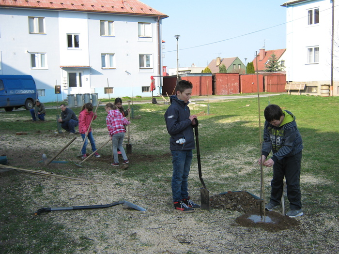 Úvod > Život v obci > Fotogalerie z akcí > Výsadba stromků OÚ a ZŠ Přáslavice - 15.4.2015
