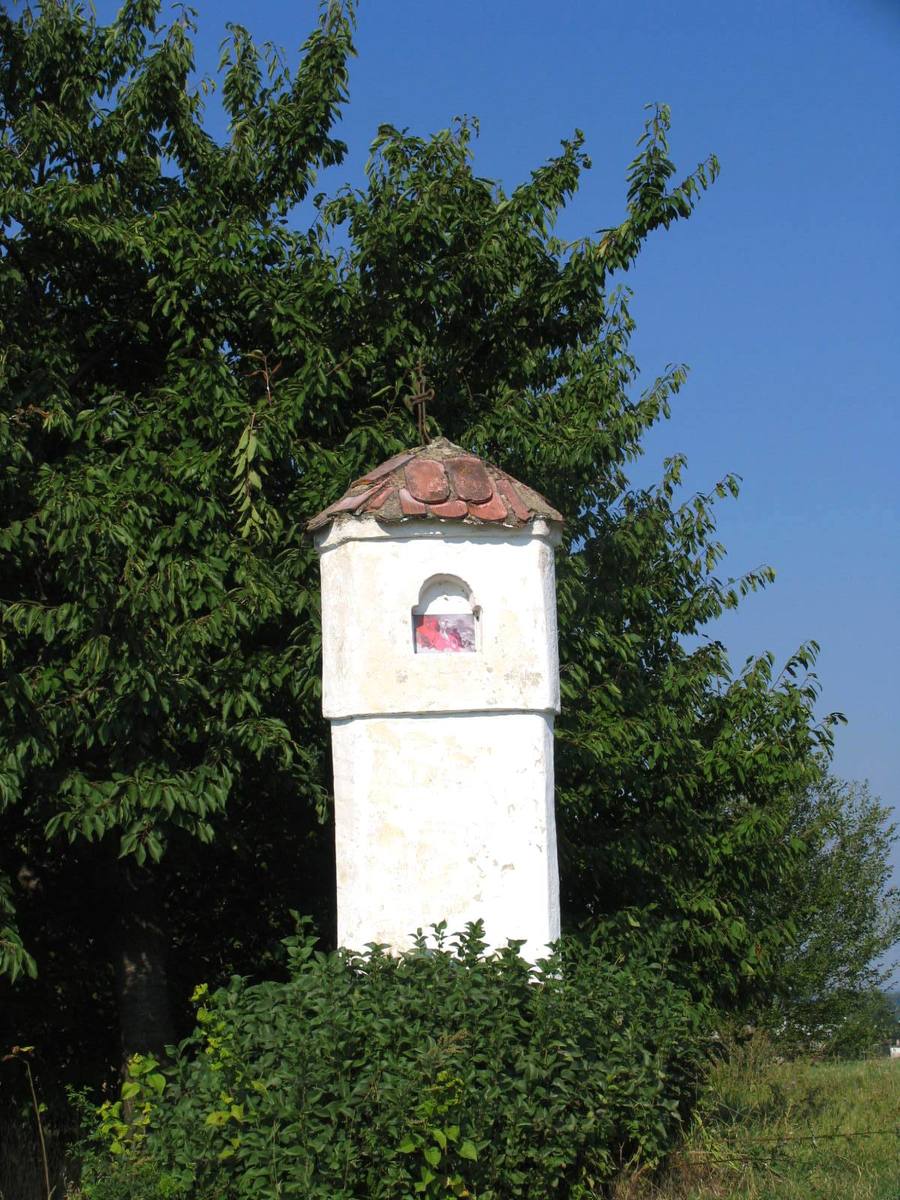 Na poli pod Přáslavicemi u silnice na Olomouc je boží muka postavena na konci 18-tého století. Je trojboká, z pálených cihel.