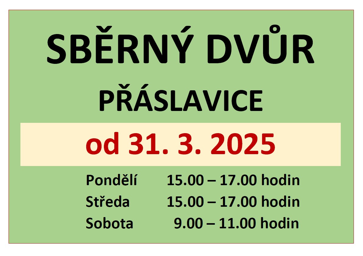 Od 1.12.2025 bude Sběrný dvůr Přáslavice v pondělí do odvolání uzavřen.